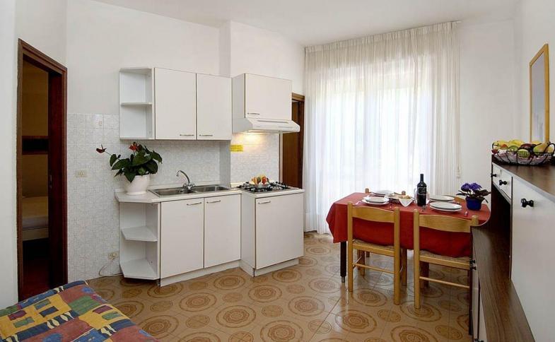 | Apartmány se nacházejí v resicenci Apollo (Via Giove), Scala (Via Perseo) a residenci Ca´ Cividale, asi 350m od pláže a 200m od centra letoviska Bibione Spiaggia. Apartmány jsou vybaveny kuchyňským koutem vč. mikrovlnné trouby, treozerm, TV, sprchovým koutem, a apartmány typu trilo mají klimatizaci. Pobyt se psem lze pouze v residenci Apollo, v přízemí residence se nachází pizzerie. Apartmány v residenci Scala mají pro hosty kryté parkoviště. |