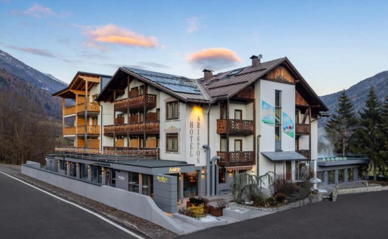 | Hotel Ariston se nachází na tichém a slunném místě ve vesničce Monclassico. Je vhodný nejen pro lyžaře - je obklopen krásnou přírodou, která přímo vybízí k procházkám zasněženou krajinou podél řeky. Pozn.: Ceny hotelu jsou dynamické a mohou se v průběhu měnit, rádi vám ověříme aktuální cenu. Vybavení a služby: recepce, bar, restaurace, bistrot a pizzeria Meridiane, *wellness centrum (relaxační zóny, vnitřní krytý bazén - 36 m2, celoročně vyhřívaný na 31 °C s vířivou zónou, saunová zóna - maxi finská sauna 90-120 °C a klasická finská sauna 70-90 °C, tichá místnost pro dospělé s lehátky a výhledem do zahrady), nový Sky Pool - venkovní bazén (55 m2, celoročně vyhřívaný na 33°C) a terasa s barem a lehátky, venkovní biosauna 50-60 °C a venkovní vířivka, schovna lyží, parkoviště, wi-fi připojení, nabíjecí stanice pro elektro auta, hotelová půjčovna lyží * Provoz bazénu, wellness centra, posilovny a jiných služeb tohoto druhu závisí na aktuální vládní či zdravotnické vyhlášce, CK nenese odpovědnost za jejich provoz v době pobytu. Ubytování: dvoulůžkové a vícelůžkové pokoje s vlatním sociálním zařízením různých typologií, jsou rozděleny do tří podlaží, z nichž jedno je podkroví, všechny jsou slunné, prostorné a pohodlné Dvoulůžkový pokoj Deluxe - Pro 2 až 3 osoby - s manželskou postelí/dvoulůžkový pokoj, 20-22 m², nejnovější pokoje, prostorné a panoramatické, s nábytkem z přírodního modřínového dřeva, dřevěnou podlahou a širokým balkonem, nabízejí telefon, barevnou TV-SAT, minibar, trezor a koupelnu se sprchou a samostatnou toaletou, fén, klimatizaci Dvoulůžkový pokoj Comfort - Pro 2 osoby - s manželskou postelí/dvoulůžkový pokoj, 20-22 m², dvoulůžkové velké pokoje s balkonem a oknem, barevnou TV-SAT, parketovou podlahou, telefonem, fénem, trezorem a koupelnou se sprchou a bidetem Dvoulůžkový pokoj Economy - pro 2 osoby - s manželskou postelí, 15-16 m², dvoulůžkové pokoje se zkosenými stropy, malým oknem velux, barevnou TV-SAT a parketovou podlahou, telefonem, fénem, trezorem a koupelnou se sprchou a bidetem Další typy pokojů na vyžádání v CK: Rodinný pokoj Family Deluxe - Pro 4 až 6 osob, 40-44 m², nové propojené dvoulůžkové/třílůžkové pokoje, prostorné a panoramatické s nábytkem z přírodního modřínu, dřevěnou podlahou a širokým balkonem, oba pokoje jsou vybaveny telefonem, barevnou TV-SAT, minibarem, trezorem a koupelnou se sprchou a oddělenou toaletou, fénem, klimatizací Rodinný pokoj Comfort - Pro 3 až 4 osoby, 25-27 m², čtyřlůžkové pokoje s manželskou postelí a dvěma samostatnými lůžky, ideální pro rodiny s teenagery a skupiny přátel, nabízí balkon a okno, barevnou TV-SAT, parketovou podlahu, telefon, fén, trezor a koupelnu se sprchou a bidetem Rodinný pokoj Comfort Economy - Pro 2 až 4 osoby, 20-24 m², manželská postel a rozkládací postel/palanda, ideální pro dva dospělé a dvě děti, vzdušný pokoj s balkonem a oknem, barevnou TV-SAT, parketovou podlahou, telefonem, fénem, trezorem a koupelnou se sprchou a bidetem Rodinný pokoj Classic - Pro 2 až 3 osoby, 24-26 m², velké dvoulůžkové/třílůžkové pokoje, některé s rozkládací pohovkou/palandou, pokoj je vybaven barevnou TV se satelitními programy, parketovou podlahou, telefonem, fénem, trezorem a koupelnou se sprchou a bidetem Vzdálenosti: 5 km od Commezzadury, hotelový skibus jezdí každých 30 minut CIN: IT022233A1ZY7SL3XL |