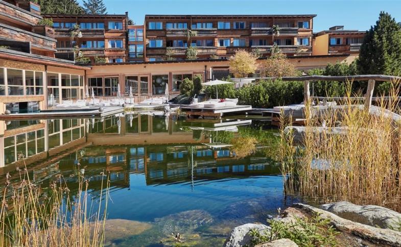 | Zdarma: venkovní bazén s vířivými lehátky propojený s vnitřním vyhřívaným bazénem (bez chloru) a wellness zóna na 2 podlažích se 3 saunami (finská panoramatická, bylinková a s parním nárazem), přírodním ponorným bazénkem, infrakabinou, zážitkovou sprchou, relaxační chatkou s krbem, zdravým koutkem a posilovnou s výhledem na jezero a vybavením TechnoGym.. Alpská zahrada o rozloze cca 5 000 m² s vlastní bylinkovou zahradou a přírodním koupacím jezírkem (700 m²) s délkou plavání 30 metrů. Cvičící místnosti vhodné pro jógu a gymnastiku s výhledem na jezero. |