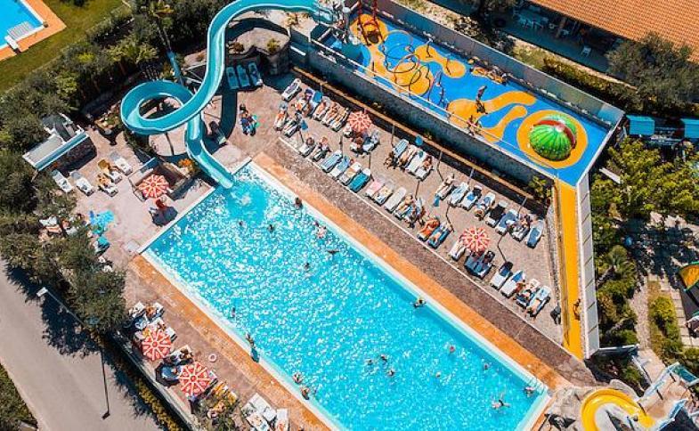 | recepce, restaurace, pizzerie, bar, obchod, Wi-Fi, prádelna (za poplatek), trezor (za poplatek), bazén se skluzavkou pro děti, 2 bazény pro dospělé (cca 1/5-15/9, povinné koupací čepice), lehátky a slunečníky u bazénu, krb, dětské hřiště. Tenisové kurty, půjčovna kol (za poplatek). |