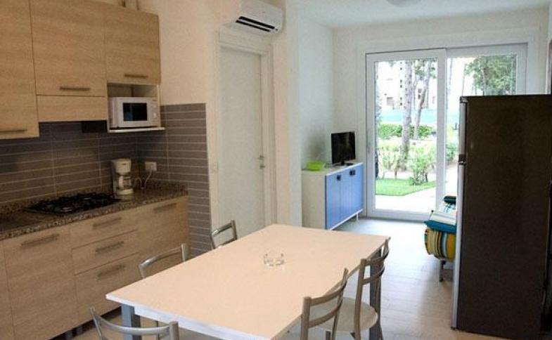 | Nově postavené řadové vilky CANNAREGIO (Via Dalmazia) se nacházejí na klidném místě v piniovém háji. Klienti mohou využívat u nedalekých residencí Campiello a Ducale společný bazén, dětské hřiště a společný gril. Klientům jsou k dispozici animace (na pláži nebo u baru Sporting). Všech 9 vilek je komfortně a moderně vybaveno, jsou mezonetové v přízemí a prvním patře s vnitřním schodištěm, mají dvojí sociální zařízení, fén, pračku, TV/SAT, kávovar, mikrovlnnou troubu, trezor, klimatizaci, balkon a v přízemí zahrádku. |