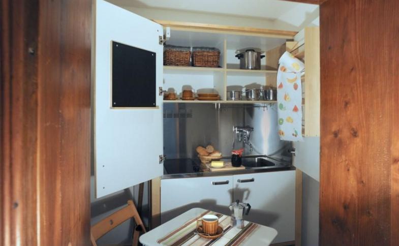 +trilo) 1x Mono 2 - (2. patro): obývací pokoj s manželskou postelí (o rozměrech 190 x140 cm) a malým kuchyňským koutem, sociální zařízení se sprchou 1x Bilo 4 - (2. patro): 1 ložnice s manželskou postelí, obývací pokoj s rozkládacím gaučem pro 2 osoby a kuchyňským koutem, sociální zařízení se sprchou 1x Trilo 4 - (mezonet): přízemí: obývací pokoj s kuchyňským koutem, prostorným jídelním stolem a krbem. V mezipatře se nachází koupelna se sprchou a WC a v 1. patře pak 2 ložnice s manželskou postelí. poznámka: v trilu jsou dveře, které mohou (ale nemusí) propojit trilo s bilokálem Vybavenost apartmánů: TV, fén |