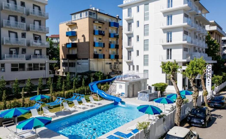 Club Hotel Residence *** leží v centrální části letoviska Cesenatico, 100 metrů od pláže. Nabízí kompletně zrekonstruované interiéry, klimatizované pokoje s balkonem, program All Inclusive Light, venkovní bazén se skluzavkou, animační program pro celou rodinu na pláži, plážový servis v ceně, půjčovnu kol a internetové připojení WIFI. UbytováníHosté se zde mohou ubytovat v jedno až čtyřlůžkových pokojích typu Standard (14-18 m2). Rodiny s dětmi mají k dispozici pokoj se čtyřmi lůžky nebo s manželskou postelí a palandou. Ke standardní výbavě patří klimatizace, koupelna se sprchovým koutem, vysoušeč vlasů, sada toaletních potřeb, satelitní TV, trezor, telefon, balkon a internetové připojení WIFI. Pokoje ve vyšších patrech jsou dostupné výtahem. Dětská postýlka pro dítě do dvou let je na vyžádání a za poplatek ve výši 10 EUR za den. Platí se na místě. Za příplatek ve výši 8 EUR na den lze rovněž pronajmout miniledničku. GastronomieV ceně zájezdu je program All Inclusive Light. Program zahrnuje bufetovou snídani s nabídkou sladkých a slaných jídel a teplých a studených nápojů ve snídaňové místnosti přímo v Hotelu. Bufetový oběd a večeři mají hosté k dispozici v panoramatické restauraci hotelu Cosmopol, vzdálené 350 metrů od hotelu. Během jídel jsou hostům k dispozici nápoje (voda a lokální červené a bílé víno). Během dne je v ceně otevřený bar s nabídkou perlivé a neperlivé vody a vína z nápojových automatů. Pobyt začíná obědem a končí snídaní. PlážPísečná pláž je vzdálená 100 metrů od hotelu. Plážový servis je v ceně a zahrnuje jeden slunečník a dvě lehátka na pokoj. Na pláži najdete hřiště na plážový volejbal, boules, stolní tenis, půjčovnu šlapadel a animační a sportovní program. Hotelové služby a vybaveníV hotelu se dále nachází recepce (otevřená od 8:00 do 24:00), výtah, TV místnost, restaurace, bar, venkovní bazén se skluzavkou, vířivka, dětský bazén, lehátka a slunečníky kolem bazénu, zahrada, terasa, půjčovna kol, herna a internetové připojení WIFI. ZvířataMazlíčci (menší plemena do 15 kg) jsou v hotelu vítána. Za pobyt se zvířetem se účtuje poplatek ve výši 35 EUR za pobyt. Pobyt se zvířetem je třeba vyžádat během rezervace. Zvířata nejsou povolena ve společných prostorách. ParkováníSvé vozidlo si můžete zaparkovat zdarma na vyhrazeném částečně krytém parkovišti 200 metrů od hotelu (podle dostupnosti). Cesenatico Cesenatico - italské moře, cyklistická tradice a pohodová atmosféraCesenatico je jedno z nejoblíbenějších letovisek Emilia-Romagna na pobřeží Jaderského moře, známé svou přátelskou atmosférou, rozlehlými písečnými plážemi a bohatou historií. Město si uchovalo tradiční rybářský přístav navržený Leonardem da Vincim, přitom však nabízí vše, co potřebujete pro moderní a pohodlnou dovolenou u moře.