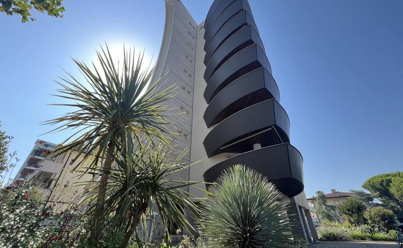 | moderní rezidence, která tvarem připomíná plachtu lodi, má výbornou polohu. Nachází se v blízkosti centra i pláže. Ideální volba i pro náročné klienty. |
