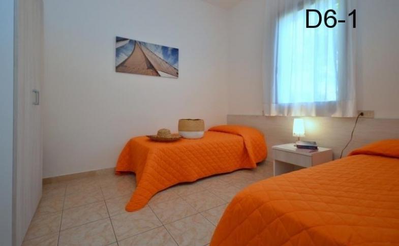 | apartmány jsou příjemně zařízeny, vždy s vybaveným kuchyňským koutem, mikrovlnná trouba, kávovar, SPR+WC, TV/SAT, trezor, klimatizace, terasa, zahrádka. D6: (Via Mughetti 3, max. 6 osob) dvě ložnice po dvou lůžkách, ložnice s jedním lůžkem (nebo s patrovým lůžkem), denní místnost (s rozkládacím lůžkem nebo bez), kuchyňský kout. Klimatizace. D6-1: (Via Azalee 22/B, max. 6 osob) tři ložnice po dvou lůžkách, denní místnost s kuchyňským koutem. Klimatizace. |