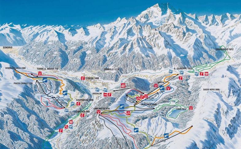 | Chiesa Valmalenco, centrum - 900 m, skiareál Alpe Palú - 800 m |
