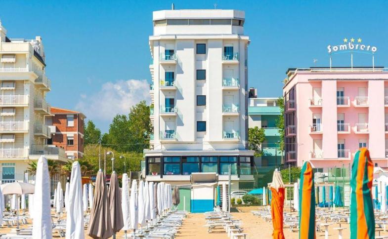 Rimini, v městské části Rivazzurra, 10 m od pláže.
