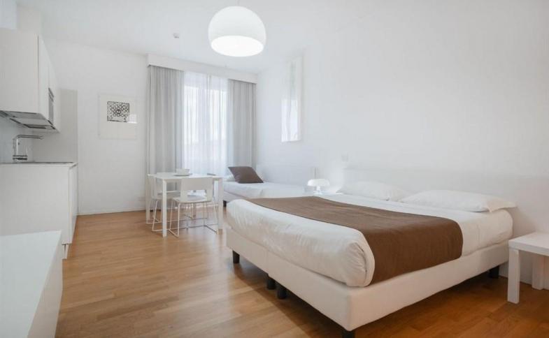 jejichž výměna a úklid jsou v ceně. MONO COMFORT (30 m²):V prostorných, stylově zařízených apartmánech Mono Comfort se mohou ubytovat až 2 osoby. Skládají se z otevřené kompletně vybavené kuchyně s obývacím pokojem, manželské postele a koupelny se sprchou. Apartmány se nachází jak v části Grandi Magazzini, tak v části Ala 6X11, kde kuchyňské kouty mají i myčku nádobí. MONO SUPERIOR (30 m²): Mono Superior je velký a pečlivě zařízený apartmán, kde se mohou ubytovat až 3 osoby. Má otevřený obývací pokoj s kuchyní, koupelnu se sprchou, manželskou postel a samostatné lůžko. Apartmán se nachází v části Ala 6X11, kde kuchyňské kouty mají i myčku nádobí. MONO DANTE (27-38 m²): Apartmány Mono Dante se nacházejí v části Residenza Dante, 400 metrů od Residence Grandi Magazzini. Jsou prostorné a stylově zařízené a mohou se v nich ubytovat až 2 osoby. Skládají se z otevřené obývací části s kompletně vybavenou kuchyní, rozkládací pohovky a koupelny se sprchou. MONO FAMILY (41-46 m²): Apartmány Mono Family v rezidenční části Ala 6X11 jsou ideálním řešením pro rodiny nebo dva páry přátel. Skládají se z otevřeného prostoru plně vybavené kuchyně a obývacího pokoje, rozkládací pohovky, podkroví s manželskou postelí, kterou lze na požádání vyměnit za 2 jednolůžkové, a koupelny se sprchou. Maximální obsazenost 4 osoby + 1 dítě na přistýlce. BILO (41-45 m²): Dvoupokojové apartmány Bilo jsou prostorné a zařízené v praktickém a elegantním stylu. Skládají se z otevřené kompletně vybavené kuchyně a obývacího pokoje, ložnice s manželskou postelí, kterou lze na požádání vyměnit za 2 jednolůžkové, a koupelny se sprchou. Apartmány se nacházejí v části Grandi Magazzini. Maximální obsazenost 4 osoby + 1 dítě na přistýlce. BILO DANTE (38-58 m²): Dvoupokojové apartmány Bilo Dante se nacházejí v části Residenza Dante, 400 metrů od Residence Grandi Magazzini. Jsou prostorné a zařízené v praktickém a elegantním stylu. Skládají se z otevřené kompletně vybavené kuchyně s obývacím pokojem, ložnice s manželskou postelí, kterou lze na požádání vyměnit za 2 jednolůžkové, a koupelny se sprchou. Maximální obsazenost 4 osoby. TRILO DANTE (61 m²): Třípokojový apartmán Trilo Dante se nachází v části Residenza Dante, 400 m od Residence Grandi Magazzini, a skládá se z kompletně vybaveného kuchyňského koutu, obývacího prostoru, ložnice a koupelny se sprchou. Lůžka tvoří rozkládací pohovka a manželská postel, kterou lze na požádání nahradit 2 jednolůžky. Maximální obsazenost 6 osob + 1 dítě na přistýlce. |
