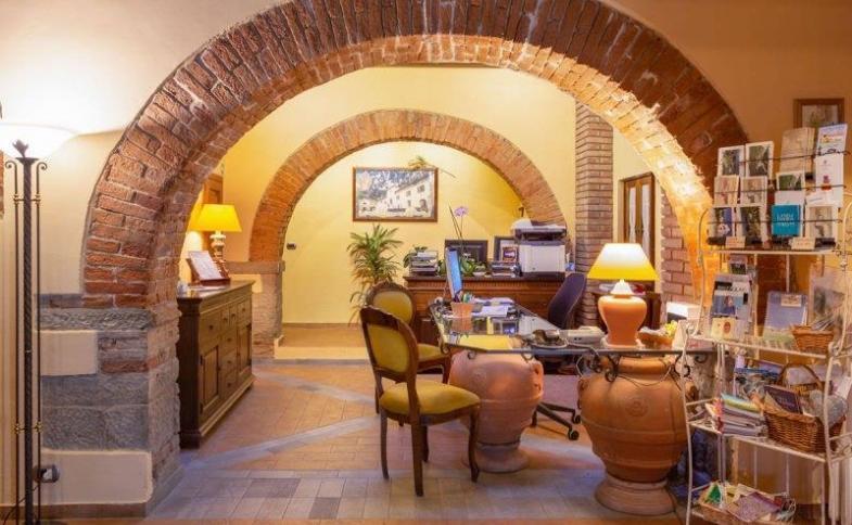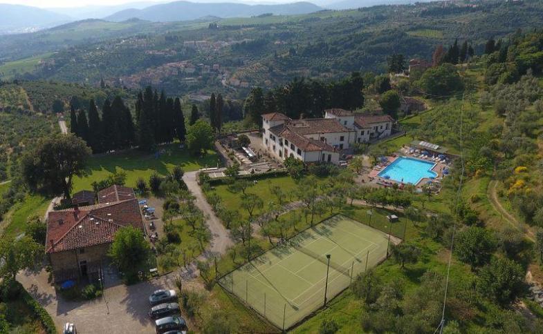 | elegantní usedlost, která leží na typickém toskánském venkově mezi údolími posetými olivovníky a vinicemi. |