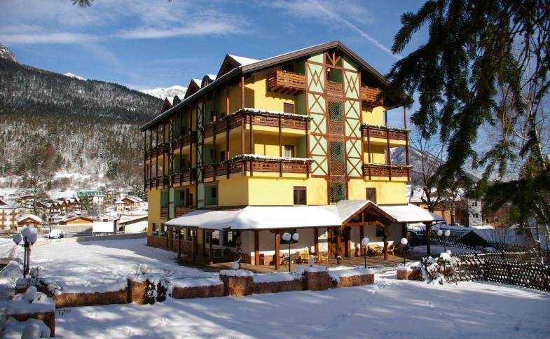| Hotel Dal Bon má typickou trentinskou restauraci, která podává místní kuchyni,relaxační sluneční terasa,a pokoje v alpském stylu s bezplatným Wi-Fi a balkonem.Pokoje hotelu Dal Bon jsou zařízené dřevěným nábytkem a obloženy.Všechny mají LCD TV a některé mají trámové stropy.Lyžárna a skibus jsou k dispozici zdarma.Můžete také využít speciální ceny ve sportovním centru vzdáleném 200 metrů od hotelu Dal Bon.Pohodlné pokoje (cca.18 m2) jsou všechny vybaveny sprchou/WC,fén,některé s balkonem,topení,telefon a SAT-TV. |