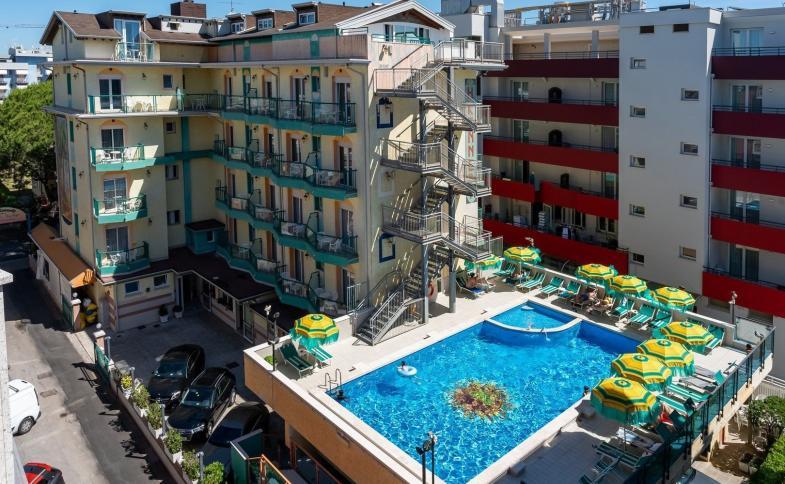 Kennedy Hotel je tříhvězdičkový hotel v oblíbeném letovisku Lido di Jesolo, který se nachází přímo u písečné pláže. Nabízí klimatizované pokoje, některé s balkonem a výhledem na moře. Hosté mohou využít venkovní bazén, restauraci, bar a plážový servis s lehátky a slunečníky. Díky poloze blízko promenády je ideální pro pohodovou dovolenou u moře i večerní procházky městem.