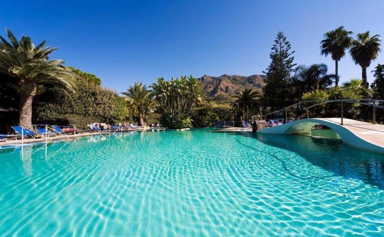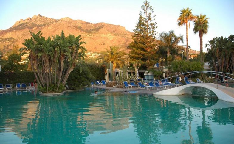 | Hotelový komplex je složen z budovy s recepcí a dalších budov, umístěných v udržované privátní zahradě s raritními exempláři tropických a subtropických rostlin. Hotel se nachází v klidné zóně., cca 1 km od pláže Citara a Poseidonových zahrad. Hotel nabízí tři termální bazény o různé teplotě, z nichž jeden je krytý, Kneippův bazén, sluneční terasy s lehátky a slunečníky, centrum krásy, TV hala, restauraci, recepci, parkoviště. |