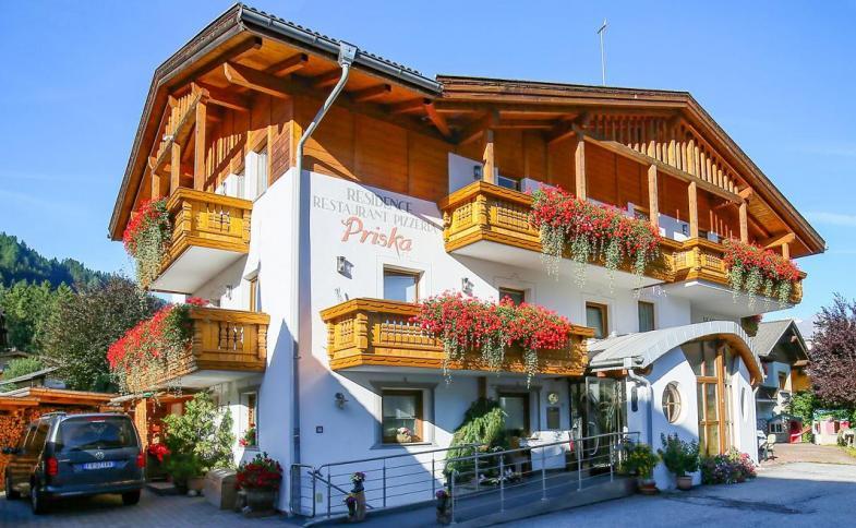 | zastávka skibusu téměř pod okny#vhodné i pro menší skupiny#společenská místnost v objektu#u týdenních pobytů 1x vstup do bazénové části aquaparku Balneo ve Vipitenu #možnost dokoupení snídaní na místě #větší vzdálenost od lyžařské nabídky částečně kompenzovaná dobře fungujícím skibusovým spojením (-) |