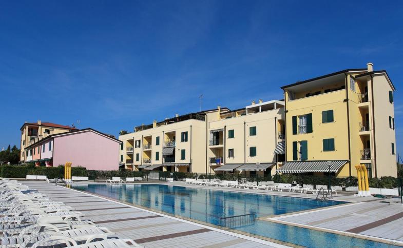 | Moderní residence ALBATROS se skládá ze tří budov. Komplex je velmi oblíbený svou polohou na klidném místě, z jedné strany je obklopený vodním kanálem Orologio tekoucím do řeky Livenza, z druhé strany pak romantickým turistickým přístavem. Na oploceném pozemku je klientům k dispozici bazén se solární terasou a lehátky, kryté i nekryté parkovací místo, restaurace, pizzerie a bar. U bazénu je klientům k dispozici Wi-Fi. V residenci je výtah, všechny apartmány jsou vkusně vybavené. |