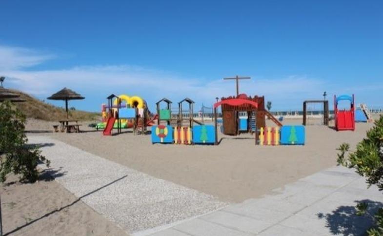 | písečná s pozvolným vstupem do moře, plážový servis (1 slunečník + 2 křesla/ apartmán, 2x pro M6 DELUXE) zahrnut v ceně pobytu. |