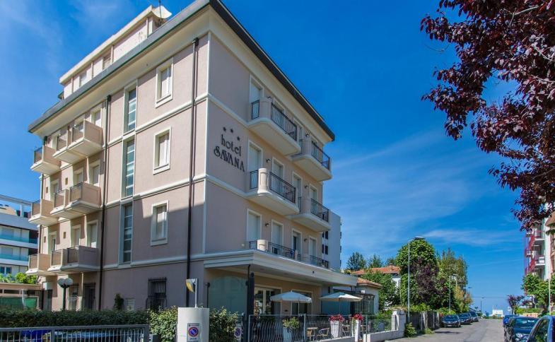 | Rimini je velmi živé středisko Adriatické riviéry, nabízí množství sportovních, kulturních, nákupních a relaxačních aktivit. 15 km jižně od Rimini, u Riccione, je největší italský aquapark Acquafan, 40 km severně u Raveny je největší italský zábavní park Mirabilandia. V Rimini navštívíte historické centrum, delfinárium, Itálii v miniatuře, nabízí se výlet do San Marina aj. Příjemný, rodinný hotel ležící v malebném letovisku Rimini v části Miramare, cca 200 m od pláže. Hotel disponuje recepcí, barem, restaurací, výtah, wifi připojení na recepci zdarma. |