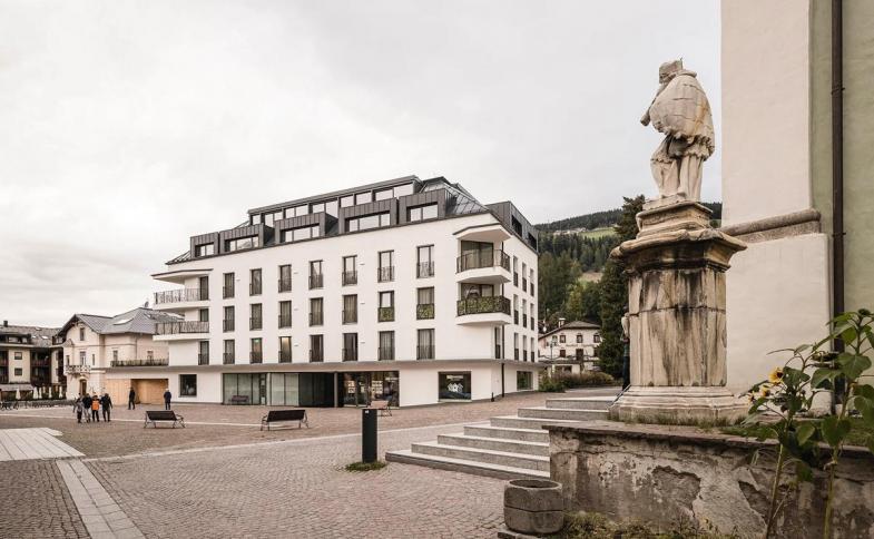 | kompletně nová residence v historickému centru městečka#prostorné a moderně zařízené apartmány #dostatečná kapacita i pro středně velké skupiny #zastávka skibusu pár kroků od domu#supermarket, kavárna, restaurace a pizzerie v blízkém okolí #možnost pronájmu skiboxů u lanovky na Monte Elmo ve Versiacu#absence relaxačního zázemí (-) |
