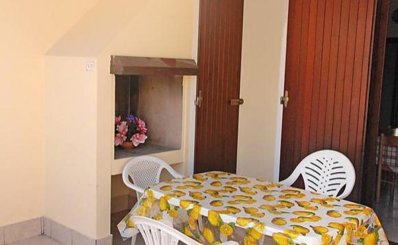 | Rezidenční komplex 2 podlažních řadových vilek je situovaný v klidné, novější části letoviska nedaleko od centra (100 m) a 400 m od jemné písečné pláže. Apartmány jsou umístěny v 1. patře a jsou moderně a vkusně zařízeny. Disponují BTV, pračkou a klimatizací (do 10 KWh/den v ceně, nad 10 kW zpoplatněno 1,2 EUR/kW). Hosté mohou využít venkovní terasu s posezením a krbem. Možnost pobytu s domácím zvířetem za poplatek 40 EUR/pobyt. Ke každému apartmánu náleží 1 parkovací místo. |