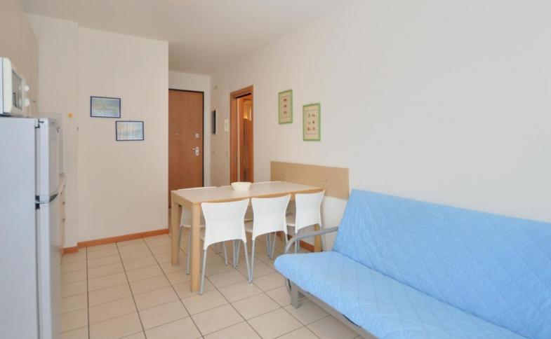 | Apartmán TRILO pro 6 osob C-6: obývací pokoj s rozkládací pohovkou a kuchyňským koutem, dvě dvoulůžkové ložnice (jedna může být s palandou), klimatizace, mikrovlnná trouba, TV, myčka, bezpečnostní dveře, sociální zařízení, prostorný balkón |