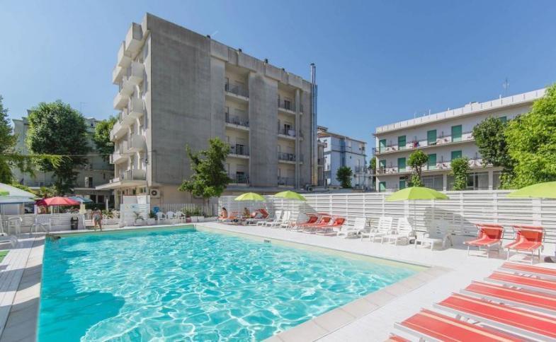 | Rimini je velmi živé středisko Adriatické riviéry, nabízí množství sportovních, kulturních, nákupních a relaxačních aktivit. 15 km jižně od Rimini, u Riccione, je největší italský aquapark Acquafan, 40 km severně u Raveny je největší italský zábavní park Mirabilandia. V Rimini navštívíte historické centrum, delfinárium, Itálii v miniatuře, nabízí se výlet do San Marina aj. Hotel Villa del Parco se nachází v Rimini v části Marebello, cca 200 m od pláže. Hotel disponuje recepcí, restaurací, barem, výtahem, venkovním bazénem, wifi připojení na recepci. |