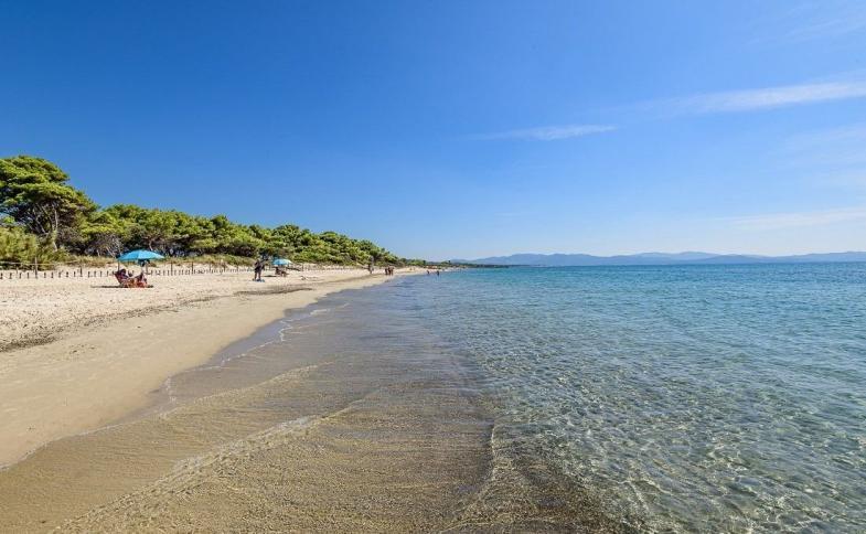 Písčitá cca 1 km, plážový servis za poplatek. K dopravě na pláž je možno využít plážový vláček (zdarma od 31.5. do 21.9.). Psí pláž “Perelli 1” je volně přístupná.