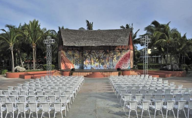havanských hotelů s přímým přístupem do moře. Areál se nachází na nádherné 10 km dlouhé pláži v severní části ostrova Cayo Santa Maria. Resort je obklopen krásnou tropickou zahradou, jíž dominují kokosové palmy a nabízí tak příjemný úkryt před horkým sluncem. Hotel má k dispozici 300 klimatizovaných pokojů s vlastním sociálním zařízením, minibarem, trezorem, vysoušečem vlasů, telefonem a satelitní TV. V rámci programu ALL INCLUSIVE lze využít stravování v bufetové restauraci "Las Taguascos" nebo v některé ze 4 specializovaných a la carte restaurací. V areálu jsou k dispozici 3 bary včetně pěkného baru přímo na pláži. Nechybí zde 3 bazény se sladkou vodou včetně brouzdaliště pro děti. Lehátka, slunečníky a plážové ručníky jsou všem hostům k dispozici. V lobby hotelu se nachází směnárna, internet, kadeřnictví, wellness centrum, obchůdky se suvenýry a zbožím denní potřeby. V hotelu probíhají každým dnem pestré animační programy pro děti i pro dospělé, taneční zábavy a diskotéky. Na pláži lze využít širokou škálu vodních sportů jako například šnorchlování, kajaky, katamarán nebo plážový volejbal. Pro milovníky sportu jsou zde tenisové kurty, fitness centrum, stolní tenis nebo kulečník. Lekce potápění, salsy či španělštiny Vám zpestří pobyt v tomto kvalitním hotelu. Pro výlety do okolí si můžete zapůjčit automobil, skútr nebo kolo přímo u hotelu. |