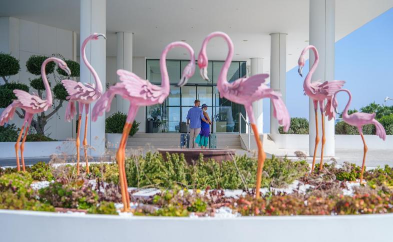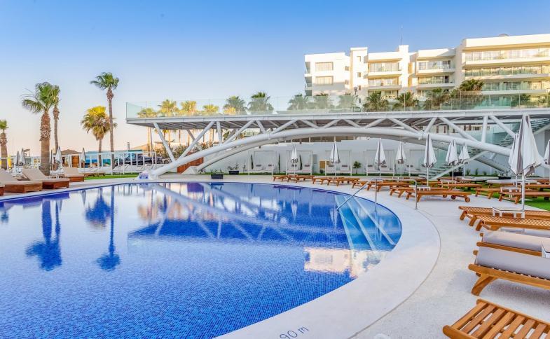 Vstupní hala s recepcí, lobby bar, hlavní restaurace. Venku bazén, terasa na slunění, lehátka, slunečníky a osušky zdarma, bar u bazénu.Pokoje