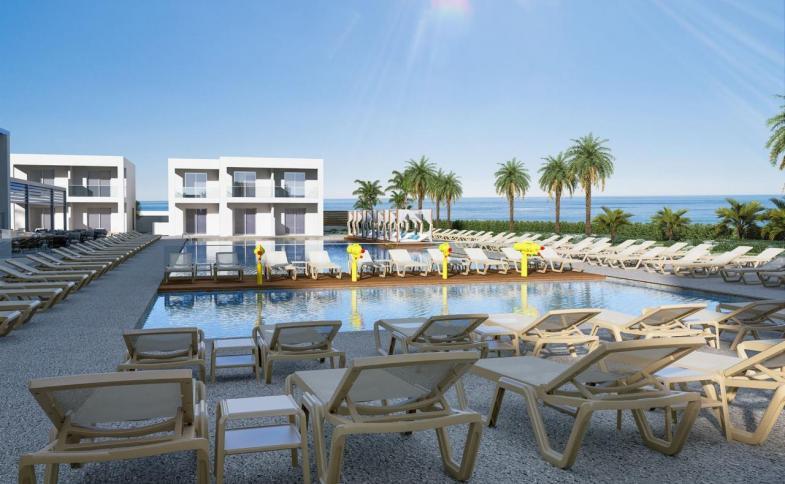 | Moderní apartmánový komplex, který je po rekonstrukci je tvořen několika 2patrovými budovami v letních barvách, které obklopují areál bazénu. Uvítá Vás vstupní hala s recepcí, Wi-Fi připojení ve společných prostorách zdarma, ke stravování slouží 2 restaurace, 1 venkovní s terasou a 1 vitřní, tradiční i mezinárodní kuchyně, k posezení u studeného nápoje pak cocktail bar. Nechybí minimarket, internetový koutek za poplatek, konferenční sál, potěší vnitřní bazén, sauna a dobře vybavené fitness centrum. Venkovní areál tvoří velký bazén, dětské brouzdaliště, prostorná sluneční terasa s lehátky a slunečníky zdarma, na pláži za poplatek, k aktivní dovolené máte k dispozici 2 tenisové kurty, volejbalové hřiště, dětské hřiště. V hlavní sezóně hotel pořádá tématiké programy, cvičení aj. Na plážích lze využít služeb středisek vodních sportů. Parkování je pro hotelové hosty zdarma. |