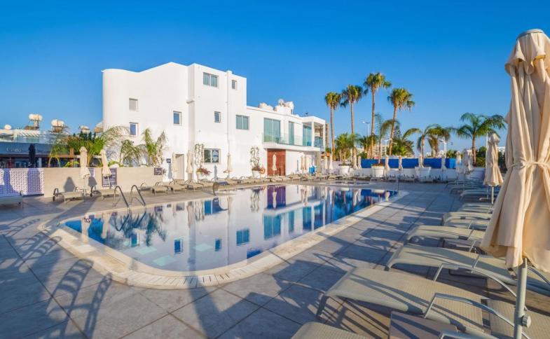 | Nový boutiqový hotel na okraji letoviska Protaras s krásnou terasou, posezením a výhledem na moře. |