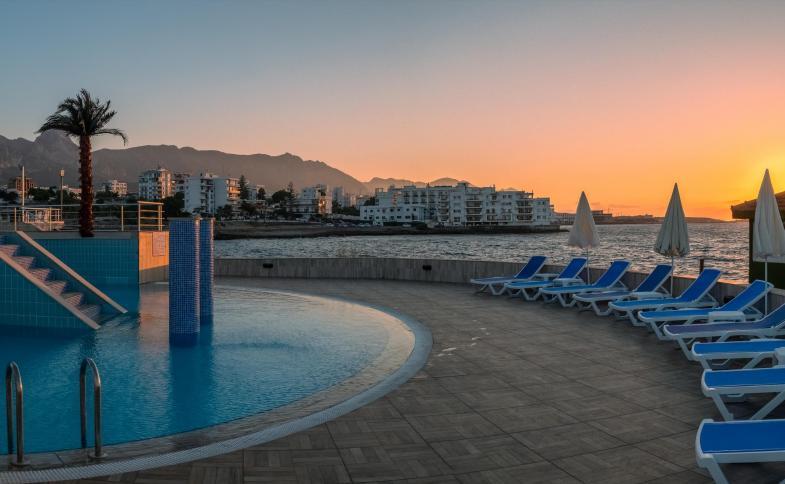 Hotel Dome se nachází přímo na pobřeží, v centru města Kyrenia, kousek od rušného dění, starého přístavu, restaurací, obchodů, barů a slavného hradu Kyrenia. Hosté mají snadný přístup ke všemu, co může toto živé město nabídnout. V hotelu je k dispozici komfortní posezení v baru Dome. Pro relaxaci je jako stvořený velký bazén s mořskou vodou, který je přirozeně naplněn přílivem každý den. Ve večerních hodinách relaxujte s koktejlem při západu slunce nebo se pobavte v hotelovém kasinu.