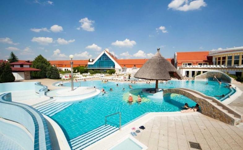 | Termální komplex Kehida leží ve vesničce Kehidakustány (asi 20 km východně od Hévízu) v údolí řeky Zala. Lázeňský komplex je rodinného typu a nabízí kvalitní služby pro páry i rodiny s dětmi. Hotel je výjimečný tím, že se nachází ve stejné budově s Termálními lázněmi s léčivou vodou a Zážitkovými lázněmi Kehida, což umožňuje komfortní přechod v županech z pokojů až k bazénům. Kryté zážitkové lázně se nacházejí v třípatrové átriově řešené budově, s mediteránní atmosferou.Lázně Kehida nabíz 13 bazénů, 94 m dlouhý vnitřní tobogán se světelnými efekty, skluzavky, venkovní bazény s teplotou vody 34-36°C, bazény s léčivou vodou, whirlpool či saunový svět, chrliče s masážními tryskami, divokou řeku. Pro rodiny s malými dětmi je k dispozici baby-bazén se sklouzavkou pro nejmenší, pro kojící maminky je vytvořena diskrétní místnost s nábytkem na přebalování. Letní koupaliště nabízí množství zábavy - zážitkový bazén s gejzíry, masážními tryskami, s pool-barem v středu bazénů, baby-bazén, bazén s umělým vlnobitím, plavecké bazény, sedací bazény s léčivou vodou, terasy na odpočívání a slunění (také pro naturisty). Část bazénů je v provozu jen sezónně. |