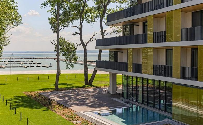 | Tento luxusní resort na břehu Balatonu se nachází v blízkosti centra oblíbeného letoviska Balatonfüred. Resort nabízí svým hostům výhodnou lokalitu a nově postavené molo a krásnými výhledy na Balaton a možností relaxace. Od českých hranic je vzdálený okolo 300 km a známé městečko Veszprém 22 km. |