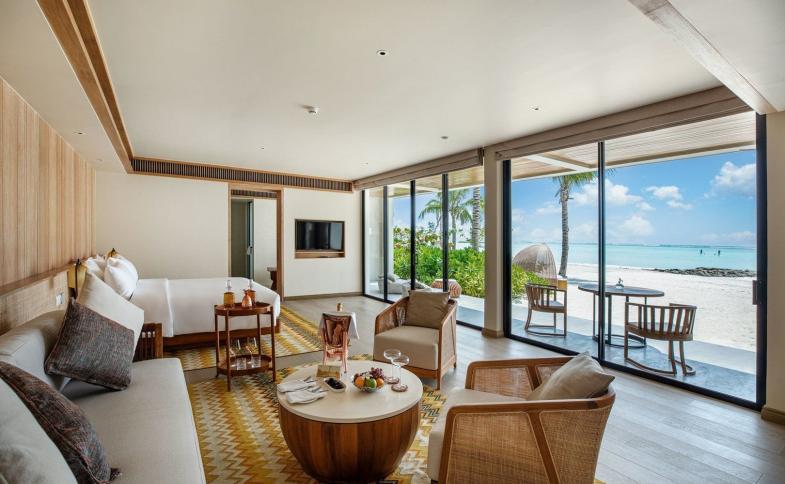 Nádherné pláže s jemným bílým pískem, které jsou ideální pro relaxaci a procházky podél pobřeží. Pláže jsou vybaveny pohodlnými lehátky a slunečníky, což zajišťuje komfort během celého dne. Moře obklopující resort je křišťálově čisté s tyrkysovými odstíny, typickými pro Maledivy. Teplé a klidné vody Indického oceánu jsou ideální pro různé vodní aktivity, jako je šnorchlování, potápění, plavání či paddleboarding. V blízkosti resortu se nachází známé surfové místo "Chickens", které je oblíbené mezi surfaři všech úrovní.