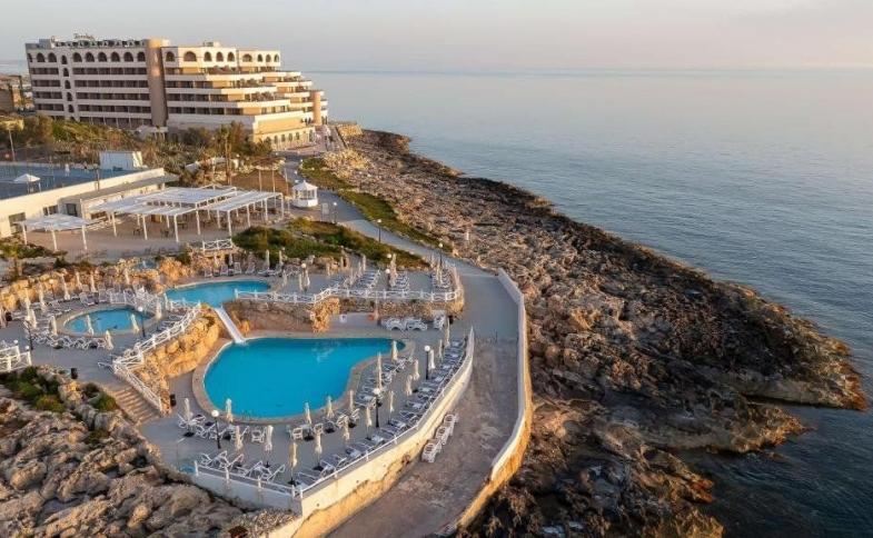 Luxusní pětihvězdičkový hotel leží přímo na břehu moře cca 13 km od letiště. Městské centrum s řadou restaurací, kaváren, obchodů a barů je vzdáleno zhruba 1 km od hotelu. Zastávka přímé autobusové linky do Valletty se nalézá cca 5 minut chůze od hotelu.