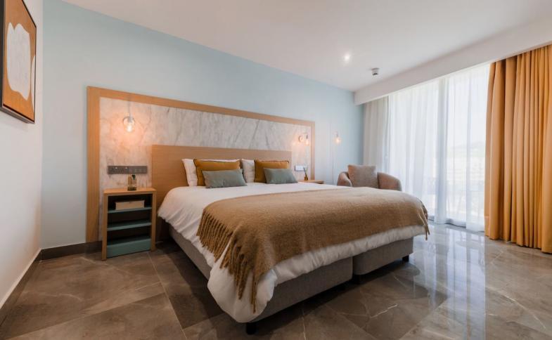 Ausstattung: Das Resorthotel mit insgesamt 120 Zimmern erstreckt sich über insgesamt 13 Etagen. Highlight der Unterkunft ist ein ca. 28m² großer Pool auf der Dachterrasse mit Liegemöglichkeiten und einer Poolbar, bei einem erfrischenden Getränk lässt sich der Ausblick über die Insel am besten genießen. Alle Zimmer sind in einem schlichten und modernen Design in warmen Farbtönen eingerichtet und laden zur herrlichen Entspannung mit maximalem Komfort ein. Den Gästen stehen außerdem folgende Einrichtungen zur Verfügung: Rezeption, Lobby mit Bar, 3 Lifte, Klimaanlage, Parkplatz (kostenlos), Geldwechsel-Möglichkeit sowie die Im "Olive Kitchen" kreieren die Köche hochwertige Gerichte der mediterranen Küche und lassen das Lebensgefühl Gozos darin widerspiegeln. Für einen ruhigen Ausklang des Urlaubstages steht die SkyBar Aqua Terra (10-23:30 Uhr, geöffnet von Mai bis Oktober) zur Verfügung. Im Gartenbereich gibt es zusätzlich noch die "Green Grove" Bar mit Sonnenliegen, unter denen das seichte Wasser hindurch fließt. Um weiterhin vernetzt zu bleiben gibt es im gesamten Hotel kostenfreies Wi-Fi.