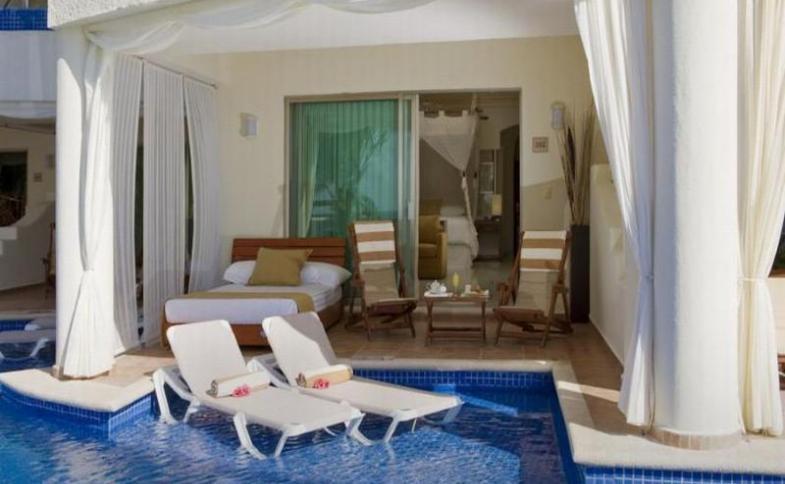 | EL DORADO MAROMA 5*****: Tento hotel se nachází přímo na krásné pláži se zlatým pískem v oblíbeném turistickém letovisku "Riviera Maya". Svým hostům nabízí celkem 98 klimatizovaných, elegantně vybavených pokojů (Beachfront Villas, Garden Villas, Honeymoon Royal Suites, Infinity Royal Suites, Royal Swim Up Suite, Royal Suite, One Bedroom Oceanfront Suites, One Bedroom Suites, Swim Up Jacuzzi Suites, Infinity Pool Jacuzzi Suites, Jacuzzi Junior Ocean Front Suites, Jacuzzi Junior Suites, Honeymoon Suites, Mi Hotelito Beachfront Suites) s vlastním sociálním zařízením, mini barem, kabelovou televizí, DVD/CD přehrávačem, trezorem, telefonem, vysoušečem vlasů a čajovým/kávovým koutkem. Pokoje disponují balkonem či terasou s lehátky, některé pokoje mají privátní bazén nebo Jacuzzi. V hotelu se nacházejí 4 restaurace (Papitos Gourmet Beach Club, Sabores, Kiyoko, Mio Cuccina Italiana) formou bufetu či a la carte, s nabídkou místní a mezinárodní kuchyně, dále 4 bary (Bar 24, Sabores Terrace, Rick´s Bar, Shisha´s Bar) se širokou škálou alkoholických i nealkoholických nápojů. Naleznete zde také 2 venkovní bazény s lehátky a slunečníky, kadeřnictví, salon krásy, saunu, Jacuzzi, fitness a wellness centrum, lázně s nabídkou masáží a nejrůznějších procedur pod dohledem školeného personálu. Dále disponuje směnárnou, prádelnou, úschovnou zavazadel, parkovištěm, půjčovnou aut, lékařskou službou, obchodem se suvenýry, butiky, klenotnictvím, internetem, business centrem, konferenčními místnostmi a room servisem - 24 hodin denně. Nechybí zde ani zázemí pro sportovní vyžití, jako je tenis, basketbal, kulečník či vodní sporty na pláži - potápění, šnorchlování, windsurfing a mnoho dalších. V hotelu se uskutečňují denní i noční animátorské programy s živou hudbou, diskotéky, karaoke, taneční show, lekce tance, španělštiny, kurzy vaření a jiné zábavní programy. |