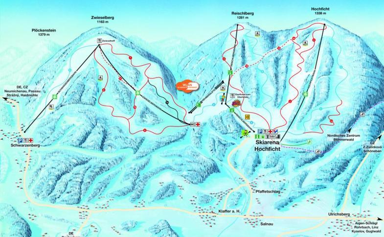 | - největší rakouský skiareál mimo Alpy položený na rakouské straně Šumavy nedaleko Lipna jen kousek od našich hranic v tzv. Trojmezí jižních Čech, Horního Rakouska a Bavorska#- zimní radovánky na lyžařské "houpačce" mezi třemi vrcholy, sjezdovky na třech kopcích - Hochficht (Smrčina), Reischlberg (Hraničník) a Zwieselberg#- skiareál zaměřený na potřeby rodin s dětmi a začátečníků#- perfektně uzpůsobená infrastruktura, obsáhlá nabídka služeb a speciální zvýhodněné tarify pro rodiny s dětmi#- bonus pro větší rodiny, kdy 3. a každé další dítě či junior do 19 let v rodině platí € 4,- / den#- 20 km kvalitně upravovaných sjezdovek, atraktivní až 3,4 km dlouhé sjezdovky všech obtížností, navíc 3 km skiroute#- kilometr dlouhá osvětlená sjezdovka pro večerní lyžování (středy a pátky)#- jedna z nejmodernějších 10místných kabinkových lanovek v Rakousku, celkem 9 přepravních zařízení včetně dvou pojízdných "kouzelných" koberců pro začátečníky#- pro zimní sezónu 2020/2021 posíleno umělé zasněžování na celkový počet 130 sněhových děl, nyní tak 100 % sjezdovek uměle zasněžováno#- dětské výukové parky Fichtl Kids Park a Reischa Junior Park, první komiksový slalom na světě, dětská Funslope a zábavné dráhy s obřími vlnami po celém areálu#- FIS závodní tratě, Funpark a Fichtl Adventure Slope#- pro sáňkování 350 m dlouhá dráha vedle lanovky, a též ve Fichtl Kids Parku, i během nočního lyžování (zdarma)#- tradiční příjemné horské chaty, vesměs s česky hovořícím personálem#- lyžařská škola a depot přímo u dětského parku, půjčovna a obchod s lyžařským vybavením#- 2 nástupní místa s velkokapacitními parkovišti#- mobilní aplikace iSki-Tracker pro analýzu vašeho lyžařského výkonu#- Wi-Fi zdarma v celém skiareálu#- vynikající podmínky pro běžecké lyžování, zimní pěší túry či výlety na sněžnicích #- bezmála 80 km upravovaných tratí různých náročností pro obě techniky v areálu Nordisches Zentrum Böhmerwald#- tradičně dobré sněhové podmínky a sezóna dlouhá více než 100 dní díky sněhově stabilní nadmořské výšce 930 až 1.338 m#- krásné přírodní scenérie a běžecké tratě patřící k těm nejlepším na německojazyčné straně Šumavy#- nástupy do stopy ze Schönebenu, Grünwaldu a Oberhaagu, 2 km dlouhá trať s umělým osvětlením v Schönebenu (úterý a čtvrtek) |