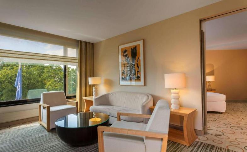 Pokoje mají klimatizaci, ústřední topení a koupelnu. Většina pokojů má balkón nebo terasu, kde si mohou hosté odpočinout. Pokoje mají koberec a nachází se v nich dvoulůžková postel nebo kingsize manželská postel. Je možné požádat o přistýlku. Také je zde sejf, minibar a pracovní stůl. K dispozici je také lednička a varná konvice/kávovar. Hosté mají k dispozici sadu na žehlení. K základnímu vybavení patří připojení k internetu, telefon, televize, rádio, budík a WiFi (zdarma). Hosté najdou na pokoji domácí obuv. Některé pokoje jsou bezbariérové. V koupelnách je sprchový kout a vana. K dispozici je také vysoušeč vlasů, kosmetické zrcátko, župan a telefon. Ke komfortímu vybavení koupelen patří kosmetické potřeby. Je možné rezervovat koupelnu s bezbariérovým přístupem. V objektu jsou pokoje pro rodiny, nekuřácké pokoje a pokoje pro kuřáky.