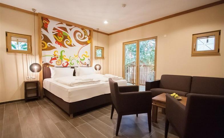 pokojích Premium - ubytování s bufetovou snídaní - využívání Tropického světa vč. tobogánového světa, dětského klubu Tropino a venkovní části Amazonia (v zimě omezený provoz) po celou dobou pobytu - při ubytování v pokojích Premium a Komfort Plus navíc: tropický saunový svět a fitness club (od 16 let) - Wi-Fi |