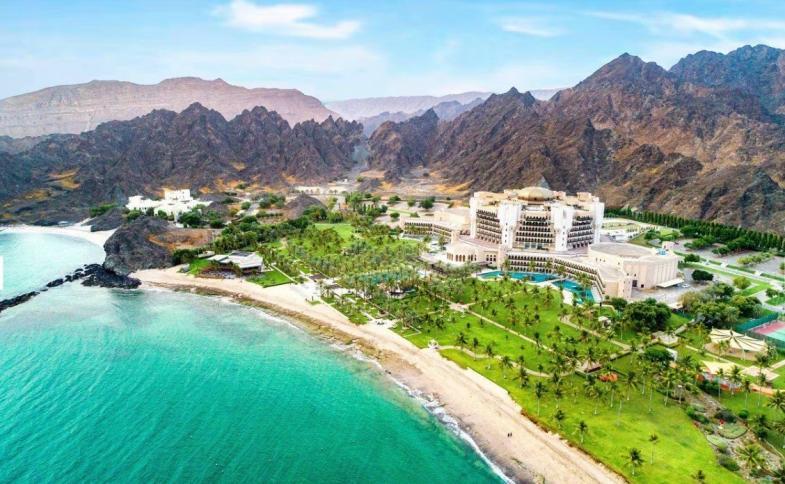 Hotel se nachází u vlastní pláže, mezi Ománským zálivem a pohořím Al Hajar, přibližně 40 km od mezinárodního letiště Maskat.