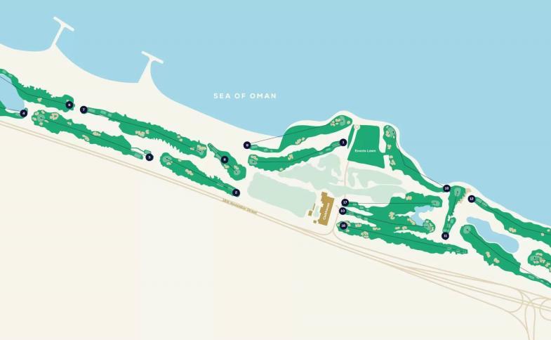 - na dvoukilometrovém úseku nedotčeného pobřeží Indického oceánu, s ohromujícím pohořím Hajjar v pozadí, se rozprostírá mistrovské 18-jamkové golfové hřiště Al Mouj Golf s parem 72