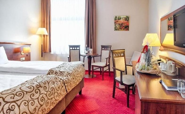 Objevte kouzlo a pohodlí Grand Royal Hotel v Poznani, kde současný design harmonizuje s vynikající pohostinností. Tento rodinný 4hvězdičkový hotel nabízí 66 elegantně navržených pokojů vybavených klimatizací, lednicí a minibarem, což zajišťuje relaxační pobyt pro obchodní i rekreační cestovatele. Hosté mohou využívat bezplatné WiFi po celém objektu, což umožňuje bezproblémové připojení při odpočinku. Hotel nabízí řadu lahodných možností stravování, což činí každé jídlo nezapomenutelnou událostí. S 24hodinovou recepcí, pokojovou službou a expresním check-in a check-out, Grand Royal Hotel upřednostňuje pohodlí a spokojenost hostů. Mezi zařízení na místě patří bazén a lounge, ideální pro relaxaci po dni plném objevování. Hotel je ideálně situován jen kousek od živé kultury a atrakcí Poznaně, včetně významných míst, jako je Pomník Tadeusze Kościuszka a Pomník Hipolita Cegielského. Pro ty, kteří cestují autem, je na místě k dispozici placené veřejné parkování. Ať už navštěvujete konferenci nebo víkendový útěk, pozorný personál se věnuje tomu, aby váš pobyt byl příjemný a nezapomenutelný. Zažijte dokonalou kombinaci pohodlí, stylu a pohodlí v Grand Royal Hotel, kde je každý detail navržen s ohledem na vaši spokojenost.