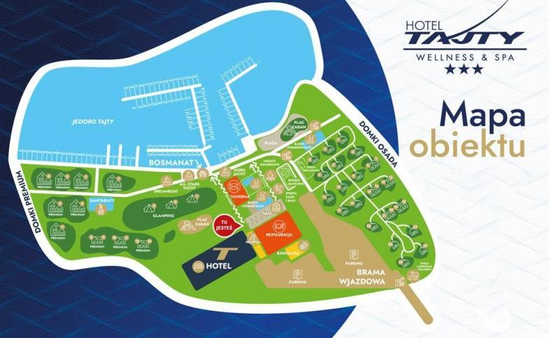 | Hotel Tajty *** Wellness a SPA se nachází v "Zemi tisíce Mazurských jezer", které najdete cca 260 km severně od Varšavy. Hotel leží přímo na břehu jezera Tajty, cca 1,5 km od přístavu ve Willkasy a 5 kilometrů od centra Giżycka. Je obklopen lesy a panenskou přírodou. Doporučujeme zapůjčení kol a vyzkoušet některou z tras kolem jezer. Celkem je zde až 300 km tras. |