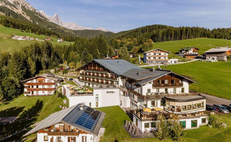 | hezký hotel cca 1,5 km od centra Filzmoosu, má klidnou polohu u lesa. Místní lyžařské středisko Filzmos s cca 20 km tratí je 1,5 km od hotelu a skibus staví u domu. Velké lyžařské středisko ve Flachau je cca 20 km od hotelu, Pichl, který je již lyžařsky spojený se Schladmingem pak cca 21 km. Na všechna tato střediska platí společná permanentka Ski Amadé. Do Ramsau am Dachstein na běžky je to jen cca 14 km. |