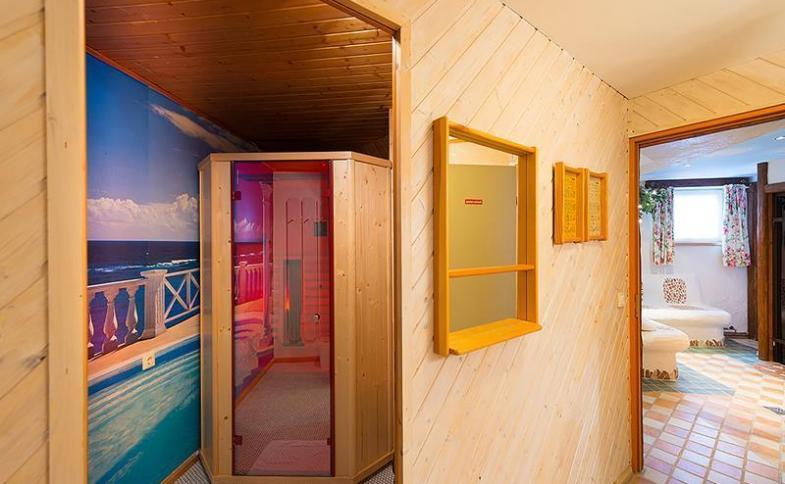 | velikost wellness 44 m2, spa: děti do 14 let - zdarma, parní lázeň 1x - zdarma, finská sauna - zdarma, infrakabina - zdarma, relaxační místnost, nahota, trávník, lehátko - zdarma, slunečníky - zdarma |