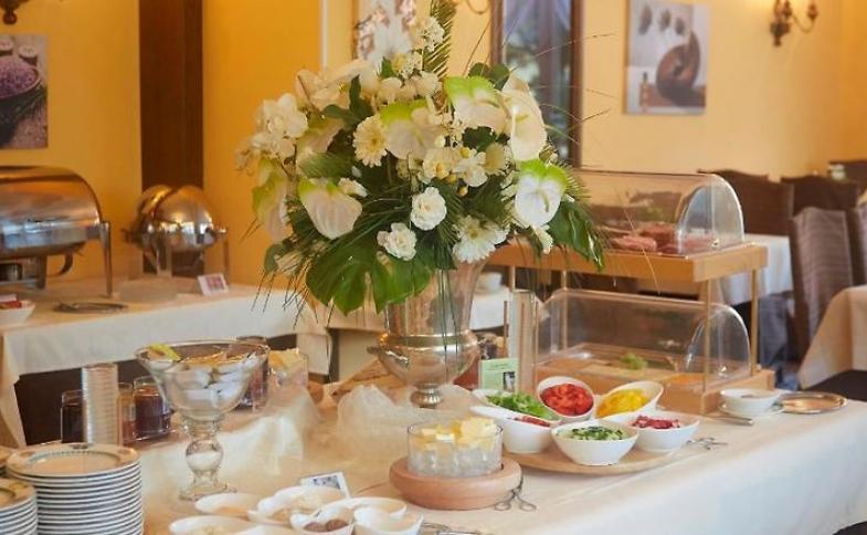 Lze objednat polopenzi. Hosté si mohou vybrat, zda budou chtít snídaně, obědy nebo večeře. Na přání je možné připravit dietní jídla, bezlepková jídla, vegetariánská jídla a dětská menu Dále je zde možnost speciálních nabídek stravování, pikniku a drobného občerstvení. Objekt nabízí nealkoholické nápoje a alkoholické nápoje.