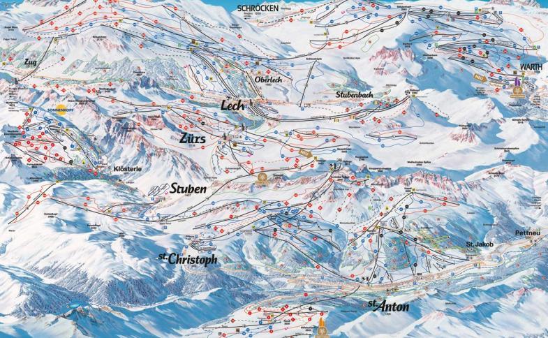 lyžařského střediska St. Anton zdarma. Zimní turistické trasy u