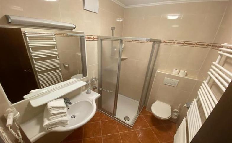 | Třílůžkový pokoj min. 36 m2 typ pokoje: třílůžkový pokoj počet pokojů: ložnice 1x, koupelna 1x počet lůžek: manželská postel 1x, jednolůžko 1x, dětská postýlka možné přeplnění: Ano koupelna: WC, fén, sprcha multimediální technologie: wifi Čtyřlůžkový pokoj min. 45 m2 typ pokoje: čtyřlůžkový pokoj počet pokojů: ložnice 2x, koupelna 1x počet lůžek: manželská postel 1x, jednolůžko 2x, dětská postýlka možné přeplnění: Ano koupelna: WC, fén, sprcha obývací část: posezení mediální technologie: TV, wifi Balkon bytu min. 54 m2 typ pokoje: apartmán počet pokojů: ložnice 2x, obývací pokoj 1x, kuchyň 1x, koupelna 2x počet lůžek: manželská postel 2x, dětská postýlka v případě přeplnění: Ano obecné: topení, balkon, varná konvice, kávovar, toaletní papír - zdarma, ložní prádlo - zdarma, ručníky - zdarma, kuchyňské utěrky - zdarma koupelna: WC, fén, sprcha obývací část: posezení kuchyň: kuchyňský kout, trouba, plynový/elektrický sporák, myčka nádobí, kávovar, lednice, varná konvice, základní vybavení kuchyně mediální technologie: TV, wifi Dvoulůžkový pokoj min. 20 m2 typ pokoje: dvoulůžkový pokoj počet pokojů: obývací pokoj / ložnice 1x, koupelna 1x počet lůžek: manželská postel 1x, dětská postýlka možná při přeplnění: Ano obecné: topení - zdarma, toaletní papír - zdarma, ložní prádlo - zdarma, ručníky - zdarma koupelna: WC, fén, sprcha multimediální technologie: TV, wifi - zdarma výhled na pokoj: boční výhled na hory, horská strana Dvoulůžkový pokoj Superior s manželskou postelí a balkonem min. 25 m2 kategorie pokoje: superior typ pokoje: dvoulůžkový pokoj počet pokojů: obývací pokoj / ložnice 1x, koupelna 1x počet lůžek: manželská postel 1x, dětská postýlka možná při přeplnění: Ano obecné: topení - zdarma, balkon, toaletní papír - zdarma, ložní prádlo - zdarma, ručníky - zdarma koupelna: WC, fén, sprcha multimediální technologie: TV, wifi - zdarma výhled na pokoj: boční výhled na hory, horská strana Rodinný pokoj min. 49 m2 typ pokoje: rodinný pokoj počet pokojů: ložnice 2x, chodba 1x, koupelna 1x počet lůžek: manželská postel 2x, jednolůžko 1x, dětská postýlka možné přeplnění: Ano obecné: topení koupelna: WC, fén, sprcha obývací část: posezení mediální technologie: TV, wifi - zdarma |