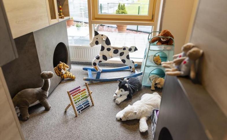 | dětská postýlka - na vyžádání, dětské hřiště, dětský koutek, chůvička, půjčovna her, dětská židlička |