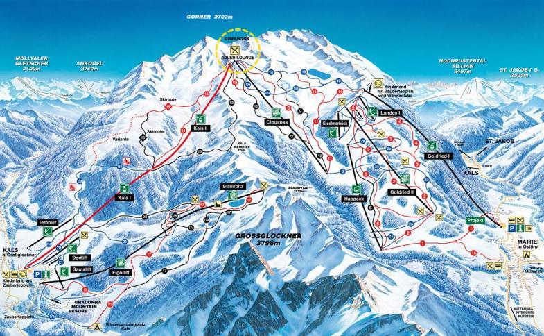 | - dynamicky se rozvíjející skiregion na jižní straně Vysokých Taur ve Východním Tyrolsku pod Grossglocknerem, nejvyšší horou Rakouska (3.798 m n. m.)#- obrovský kvalitativní skok vzhůru díky propojení Matrei se sousedním skiareálem Kalsem, kdy se zároveň lyžování posunulo až do výšky 2.621 m n. m.#- kompletně uměle zasněžované tratě obklopené fascinujícími velehorami#- skiareál Matreier Goldried s moderní 8kabinkou zajišťující rychlou a pohodlnou přepravu z městečka Matrei ve výšce 920 m n. m. až na kótu 2.120 m n. m.#- nová vyhřívaná 6sedačková lanovka na Cimaross pohodlně obsluhující horní partie skiareálu Matreier Goldried#- od sezóny 2019/2020 nová 6místná sedačková lanovka Glocknerblick z Kalsu s vyhříváním a "bublinami"#- další pohodlná a rychlá dvoudílná kabinka směřující vzhůru nad sjezdovkami ze strany Kalsu#- nezapomenutelné až 11 km dlouhé sjezdy z vrcholu Cimaross (2.621 m n. m.) v celkem 3 variantách dojezdu po vysněžených tratích až do údolí#- exkluzivní a neustále liduprázdné černo-červené carvingové pisty nad Gradonna Mountain resortem v Kalsu#- slušné možnosti pro vyznavače snowboardingu v podobě vysoko položeného funparku nad Matrei#- 3velké a dobře vybavené dětské parky#- inovativní kuchyně v restauraci Adler Lounge v nadmořské výšce nad 2.500 metrů pod vrcholem Cimaross#- skutečně velkolepé panorama 60 alpských třítisícovek#- rodinný skiareál St. Jakob im Defereggental / Brunnalm v nadmořské výšce od 1.400 do 2.525 m s převahou mírných až středně těžkých sjezdovek#- vzdor "pouhým" 17 km sjezdovek areál nabitý atrakcemi#- cvičné vleky či lyžařská školka pro nejmenší, velmi vyhledávaný funpark, měřený rychlostní úsek, sjezdovky pro carving či terény pro freeridery#- díky systému umělého zasněžování pokrývajícímu 95 % skiareálu velmi stabilní sněhové podmínky#- další zajímavostí nový vycházkový okruh s vyhlídkovou platformou u jezera Ochsenlacke#- bohatá škála après ski zábavy a relaxace #- osvětlená sáňkařská dráha, výpravy na sněžnicích s pochodněmi, upravené trasy pro pěší, paragliding, tenisová hala, vyjížďky na saních s koňským spřežením#- u skipasů SkiHit děti do nedovršených 6 let v doprovodu rodičů zdarma a děti od 6 až do nedovršených 19 let za polovinu ceny dospělého skipasu |